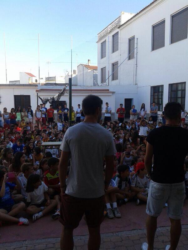 El canterano madridista Álvaro Medrán, natural de Dos Torres, y el Sebastián Moyano, cordobesista natural de Villanueva del Duque, sorprendían a muchos de los animadores en su hora de formación, momentos antes del comienzo de la jornada oratoriana de más de 800 niños y niñas de nuestro pueblo y alrededores.